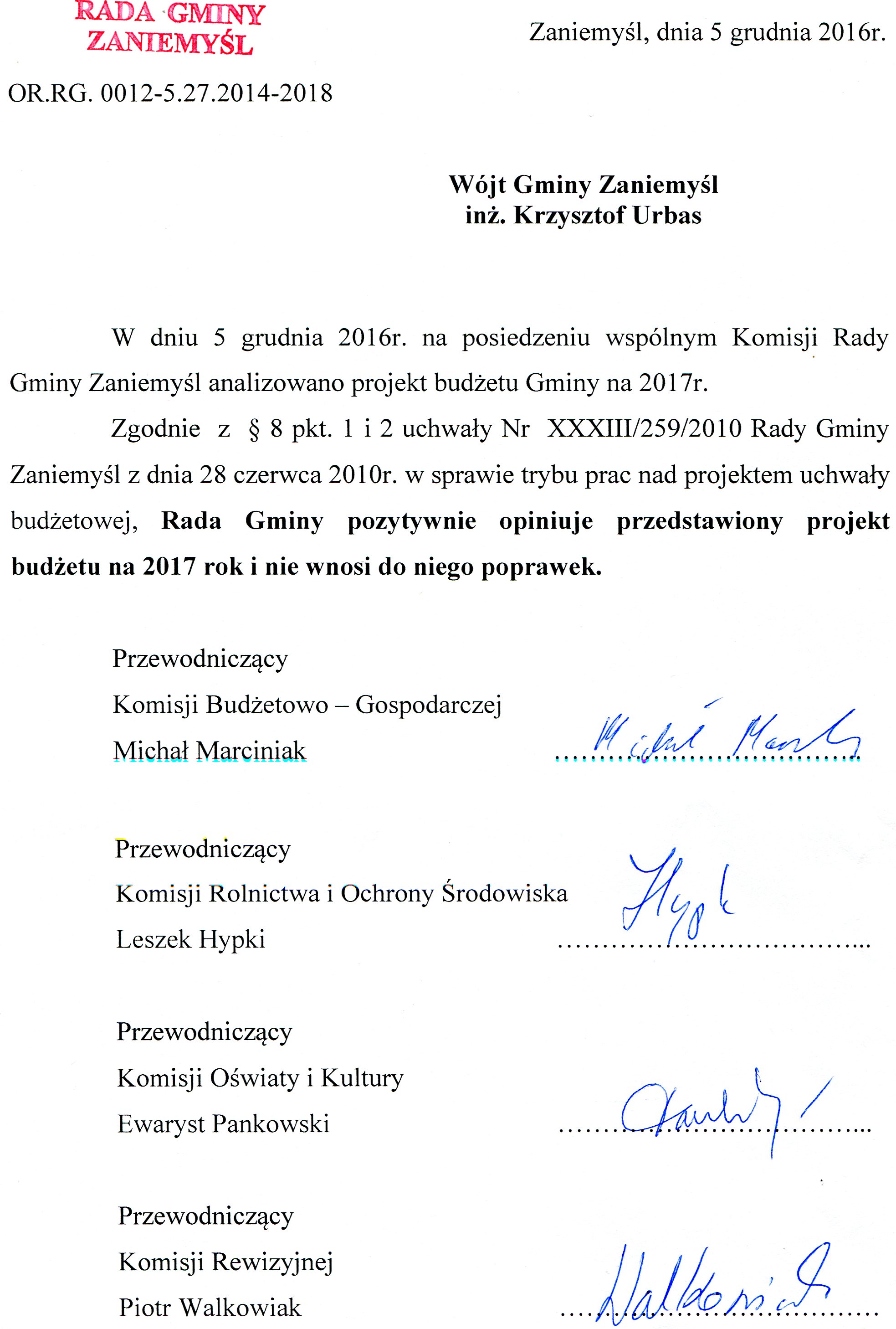 | uchwała Nr XXVIII/180/2016 Rady Gminy Zaniemyśl z dnia 28 grudnia 2016r. w sprawie zmian w budżecie Gminy Zaniemyśl na rok 2016 | |